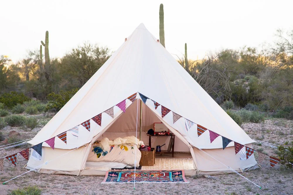 To start with, you ideally want a unique camping structure like a bell tent, a tipi, yurt or a vintage camper!
